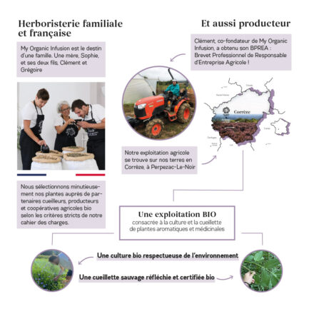 Il est recommandé de consommer 1 à 2 tasses par jour, de préférence le soir, en dehors des repas. Le CBD ne doit pas être fumé ; il est destiné à une consommation en infusion uniquement. Cette infusion est déconseillée aux mineurs, aux femmes enceintes ou allaitantes. En cas de traitement médicamenteux ou de pathologie chronique, consultez votre médecin avant utilisation. Si des effets indésirables tels que vertiges, palpitations ou troubles digestifs surviennent ; cessez la consommation et consultez un professionnel de santé. Notez que les produits CBD peuvent contenir jusqu’à 0,3 % de THC, ce qui peut entraîner un résultat positif aux tests salivaires. Il est donc déconseillé de conduire ou de manipuler des machines après consommation régulière.Origine et engagement qualité :