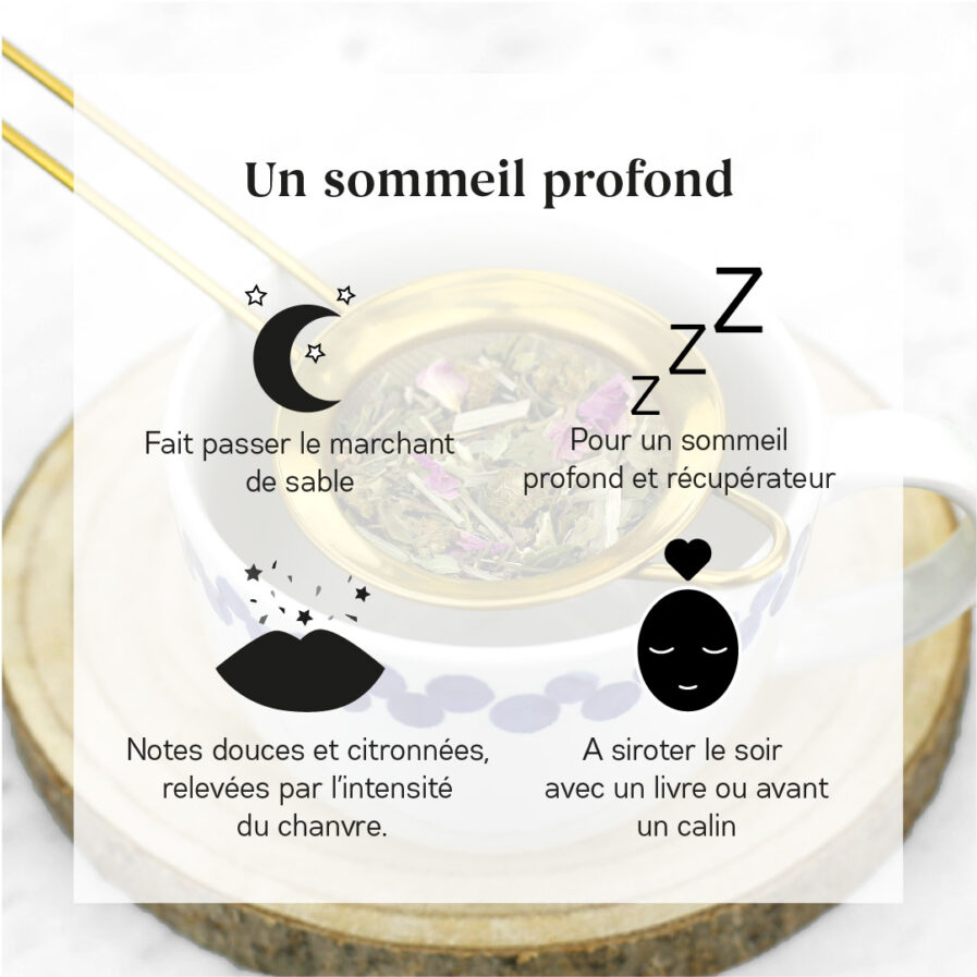 Ses plantes s’associent pour adoucir le flux du mental et vous préparer à un sommeil calme et récupérateur.
