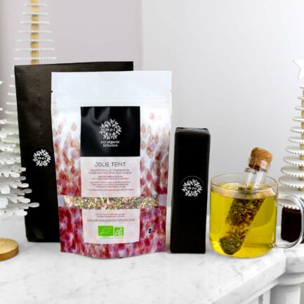 Chez nous, le bio est un pré-requis. Toutes nos plantes sont donc certifiées ECOCERT et Agriculture Biologique.Infusion JOLI TEINT bio en vrac 70g