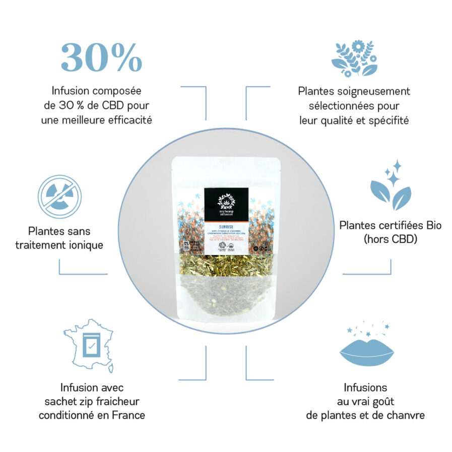 Bienfaits et vertus de l’infusion au CBD Sunrise :