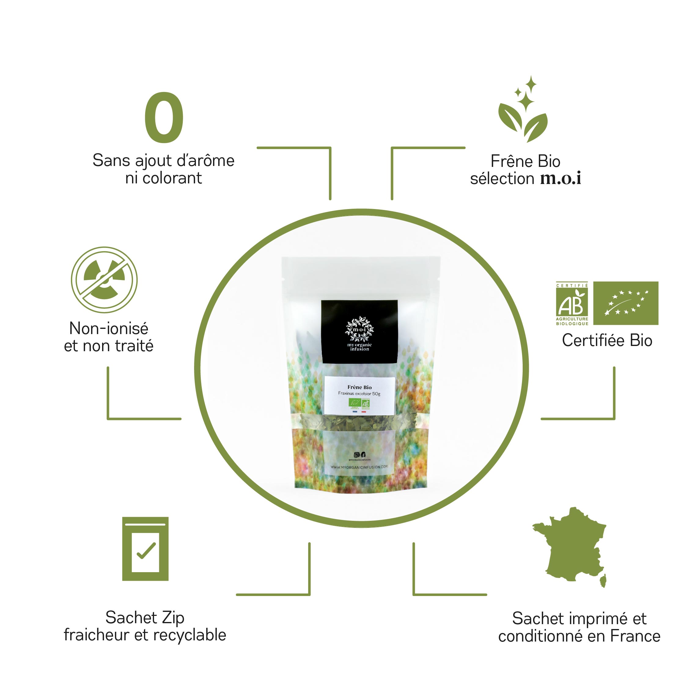 50 grammes de Frêne bio en feuilles séchées et coupées pour créer votre infusion de Frêne bio.