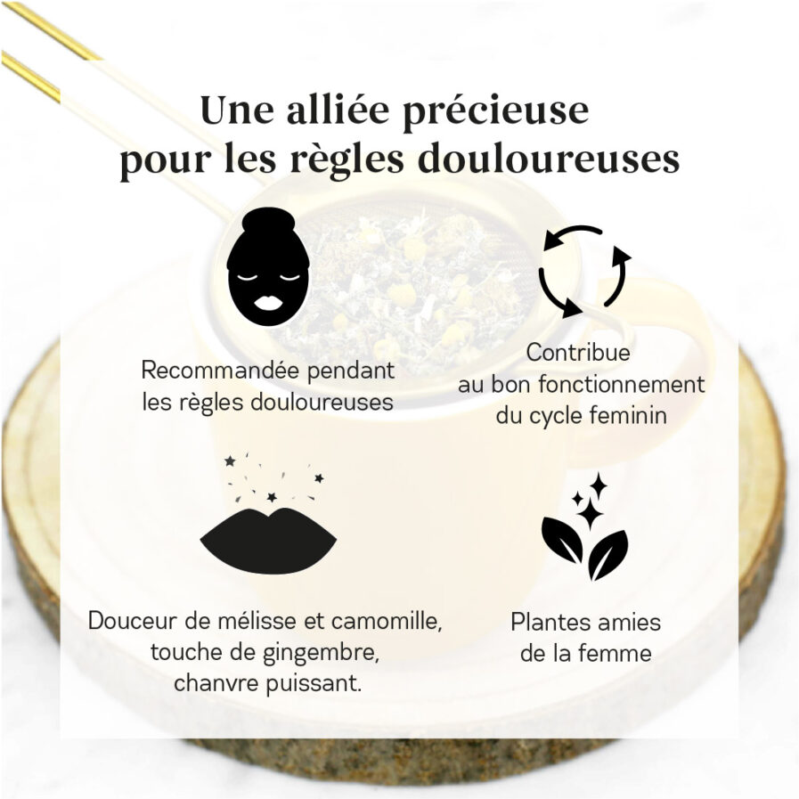 Cette combinaison unique de plantes constitue un allié précieux pour soulager les règles douloureuses et soutenir la bonne régulation du cycle féminin.